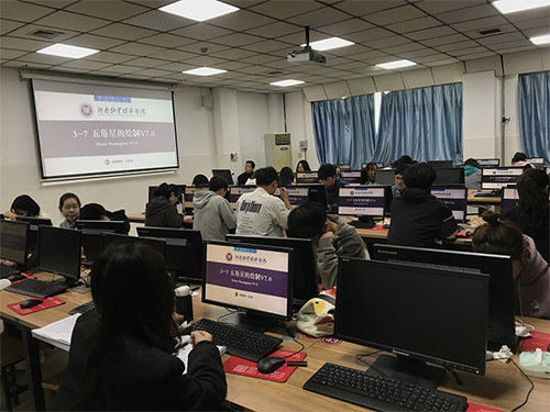 11月3日上午,“精彩一课”系列活动第19讲正式拉开帷幕,我院电子商务教研室的任佳佳老师开展了《程序设计基础》课程的“精彩一课”活动。课上,任佳佳老师采用案例教学法和启发式教学法深入讲解了递归函数定义及运行的特点,并以五角星的绘制为例帮助学生对比分析了递归函数与一般函数的区别,使学生深刻理解了递归函数的优缺点。听课的学院老师认为较好达到了授课目标,但需要在课堂设计、课堂思政、板书等方面进行改进等。