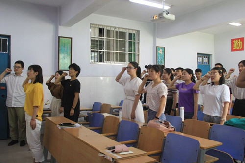 会议在庄严的奏唱国歌中拉开帷幕。大会进行第一项,余肖、孙豪慧等13名入党积极分子依次宣读入党申请书,并汇报自己的学习、工作情况,表明了希望加入党组织的迫切愿望。王玉香、杨奇奇、尚津分别对13名同志进行点评。经过无记名投票,与会党员一致同意发展他们成为预备党员。大会进行第二项,罗林峰、荆雯玲等10名预备党员依次宣读转正申请,他们各自汇报了在预备期间的一年时间中在生活、工作、学习等方面的表现,并表明了自己入党的态度和决心。老师们分别介绍了10名预备党员的基本情况,并对其预备期的表现发表了意见。经过无记名投票,与会党员一致同意发展他们按期转为中共正式党员。最后,王玉香书记希望他们在今后学习工作中能够以更高的标准来要求自己,发挥自身先锋模范作用,牢记共产党光荣使命,不忘初心,继续前行。在同学们坚定的入党誓词中此次会议圆满结束。