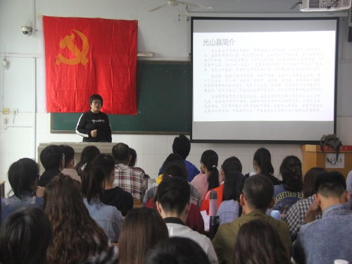 会议伊始,孙红霞博士介绍本次重走习近平总书记考察路线是为了学习习近平总书记在光山县考察扶贫工作中所宣扬的新发展理念。9月28日,曹献存院长、于晓胜书记、孙红霞博士等人带队前往光山县重走习近平总书记考察路线,进行校政调研工作。 孙红霞博士提到光山县的农业特色产业已达到一定规模,电子商务、跨境电商发展态势良好。这些与我院专业紧密对接,对我院专业实践具有重要的指导性意义。“光山十宝”、“光山羽绒”等特色品牌通过电商销往120多个国家地区,显著增加农民收入。此外,2019年9月12号阿里巴巴在光山县成立数字就业扶贫基地,也推动了光山县电子商务做优做强做大,人民生活水平不断提高。会议最后,王玉香团总支书记做了结束发言。她首先祝贺我院这次考察活动圆满完成,并对孙博士能于百忙之中为大家分享交流表达了感谢,同时强调同学们要牢牢掌握专业知识,将来在社会工作中加强与实践的联系,为社会主义建设贡献自己的力量。