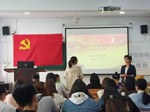 党课在师生互动新时期青年学生的责任和使命中持续热烈展开,阑珊摄影协会的会长张恩迪分享了自己入党的经历,条理清晰的阐述了自己对共产党人初心的理解。党课接近尾声时,王老师对同学们提出了四项要求:一是要把学习作为首要任务,不仅要扎实专业知识,更要在社会实践中学;二是在面向世界、面向未来的大局中不断提升体能、技能和智能,提升为人民服务的能力和水平;三是要注重修炼品德,要不断用社会主义核心价值观滋养自身的言行品格,自觉按照党和人民要求不断锤炼自己;四是将个人梦想与国家需要紧密结合在一起,让我们的梦想更有价值。