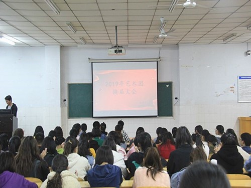 为了我院艺术团工作的正常进行,也为了让19级新队员们更好的融入艺术团,11月4日下午14时,我院文艺部在E210成功举办了太阳集团tyc234cc学院艺术团2019年换届大会。出席本次大会的领导是团总支书记王玉香老师,其余到场嘉宾有:团学会副主席杨明宇、文艺部部长张宁宁、文艺部副部长武明星。此外,艺术团各队也都按时到场。