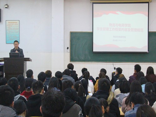 为了让学生干部了解我院学生管理规范,提高管理能力,促进我院学生工作的更好开展,12月5日中午12时40分,我院于教学楼E209开展了2019-2020学年第一期青马工程培训班第八次培训。本次培训由我院党委副书记陈永刚担任主讲人,以“学生管理工作框架内容及管理规范”为主题进行授课。我院19级全体团学会干事及各班班委参加了此次培训会。