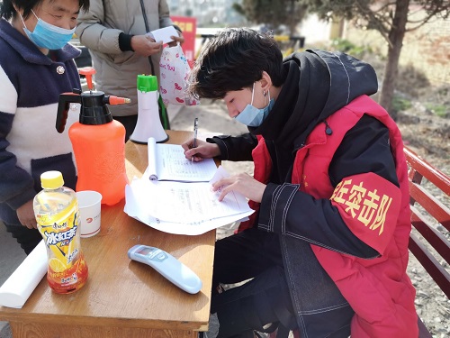 2月15日,18物流02班的高玉珠同学,在河南省驻马店市确山县任店镇王庄村疫情检测点参加抗疫,主要负责协助居民联防联控,卡点值班登记,协助医生给防控点出入人员量体温,协助村委干部信息上报。她感言道:作为一名非医学专业的大学生,虽然不能在前线做出贡献,但我会尽力做好自己能够做到的事,每天保持乐观的心态,面对村民并给于他们信心,积极配合并协助医生和村委干部的工作。在灾难面前,真正风雨同舟,携手并进。我相信,在全国人民的共同努力下,待到春暖花开之际,武汉樱花烂漫之时,我们定能摘下口罩,共创美好的明天。