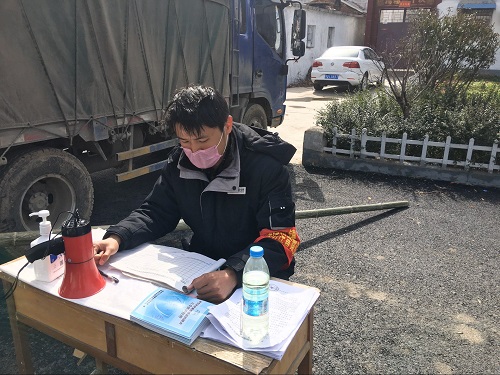 2月26日,18物流01班的马家明同学,于河南省驻马店市平舆县东和店镇镇东防疫点参加抗疫,他主要的工作内容是协助联防联控,把守出入镇子的防疫卡点,对来往人员进行体温测量及消毒。协助登记名单,辅助乡镇工作人员进行工作。面对疫情,他毫不畏惧的说:虽然无法在一线奋斗。我也应该尽自己的一份努力,积极配合基层干部及工作人员做好登记工作,配合村医对居民进行体温测量,用自己的努力为战胜疫情提供帮助。他坚信,面对困难,中国人民众志成城,我们终会战胜疫情,迎来更加美好的明天。