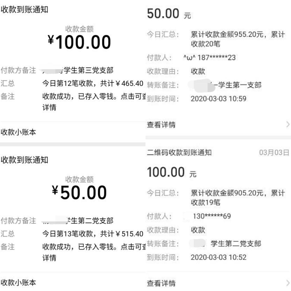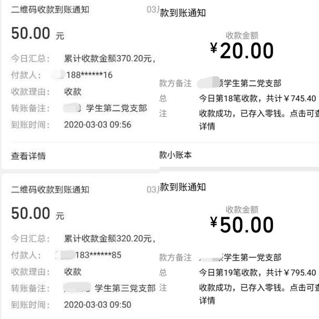 活动准备之时,我院提前向党员发放自愿捐款通知,倡议党员积极参加此次“众志成城,抗击疫情”主题捐款活动,为了防止资金损失,提前试用网上银行、微信、支付宝等网上交易软件,并建立党员支持疫情防控工作自愿捐款统计表,确保捐款信息透明。活动开展之时,我院通过网上银行、微信、支付宝等线上转账收取党员捐款并如实记录。捐款学生曾发出这样的感慨:我们虽然不能像白衣天使那样和武汉人民一起在抗击疫情一线上并肩战斗,但我们可以用手中的笔,热腾的心,为武汉加油和呐喊,为白衣天使们奉上热情的讴歌与赞颂。活动接近尾声之时,党支部将向支部书记如实反馈捐款信息并将所得捐款汇总后统一转至学校党费指定账户,同时填写《太阳集团tyc234cc党员支持疫情防控工作自愿捐款统计表》并交至校组织部,将疫情防控工作自愿捐款统计表对党员进行公示。