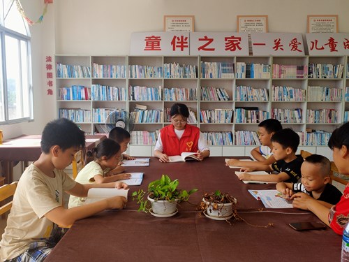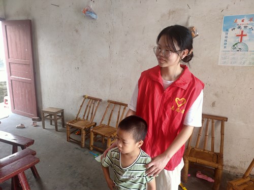 活动伊始,庄玉婷同学与枧田村妇联主席沈利萍来到当地留守儿童家中进行上户访谈,她在与儿童及其家长的交流中发现枧田村部分留守儿童因父母在外工作繁忙常年缺乏父母关爱,而呈现出性格内向、自卑、敏感以及不重视阅读书籍等现象。为解决这一问题,首先庄玉婷同学和妇联主席沈丽萍将留守儿童召集至枧田村的留守儿童之家,对他们进行心理疏导,用心告诉他们“有很多人在默默爱你,你并不孤独”、“有信心的人,可以化渺小为伟大,化平庸为神奇。”随后,庄玉婷同学与枧田村党支部书记商定长期开放农家书屋为留守儿童提供阅读场地,保证每个孩子都能获得足够的书籍阅读量、接受到文化知识的熏陶。最后,庄玉婷同学为枧田村的留守儿童送去了一些文具,她希望这些文具能为孩子们的学习带来便利,让孩子们努力学习,努力走出大山。