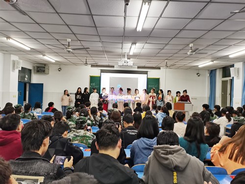 艺术团团长曲智群首先为大家简单介绍了我院艺术团的情况,鼓励大家积极互动,参与招新。我院艺术团由合唱队、表演队、礼仪模特队、古典舞队、爵士舞队、啦啦操队和主持朗诵队组成,一直以培养学生艺术技能、提高学生艺术修养、活跃校园文化生活促进校园文明建设为宗旨,意在引领学生找到展现自己的舞台,追寻青春的足迹,体会大学的魅力。