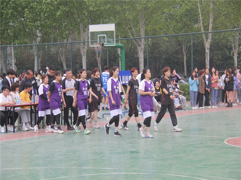 第三节比赛开始后,比赛进入白热化阶段,双方队员们来回进攻,面对艺术学院的强劲进攻,女篮队员们丝毫没有畏惧,多次抢断、远传,化解了对面的进攻,双方进攻虽然多,但是两边运动员体力消耗巨大,第三节后半场我院仍是落后一分。紧急关头,女篮13号肖梦露力挽狂澜,连抢两个篮板投中,拿下4分,领先对面,让胜利的天平向我院女篮倾斜。第四节比赛更是紧张刺激,场外的呐喊助威声音响彻云霄,场内的女篮队员们汗水淋漓,裁判连吹三个犯规,使我院获得了一次两罚一掷的机会,彻底扭转了战局,我院女篮在最后18秒抢断对面进攻球,以3分优势最终赢得了的胜利。