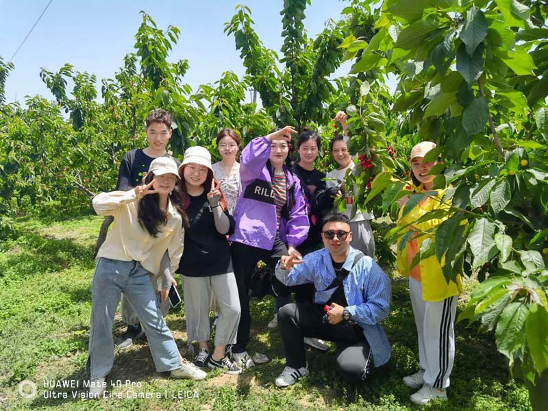 为培养电商直播人才,提升同学们的专业知识素养,响应政府加大农村电商宣传、推广农产品的号召,积极贯彻乡村振兴的伟大方针,2021年5月8日,太阳集团tyc234cc院长曹献存、副院长李艳菊、团委副书记王雪冰、实验教学中心主任肖丽萍以及农购网郭聪讲师、找菜网负责人带领9名电商直播特训营成员前往河南绿兴农业大樱桃基地进行直播电商实战活动。