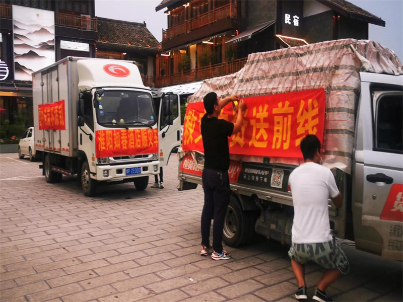 洪灾发生后,安晶晶同学与家人亲属一同筹资购买抗洪物资,包括方便面、面包、矿泉水等救灾食品。用两个货车前往灾区支援,一辆去往鹤壁浚县,一辆去往周口扶沟县。同时安晶晶同学跟车一同去往扶沟县的其中一个作为安置点的学校进行志愿活动,据安晶晶同学了解,该校截止到23日晚已经安置3601名受灾群众。