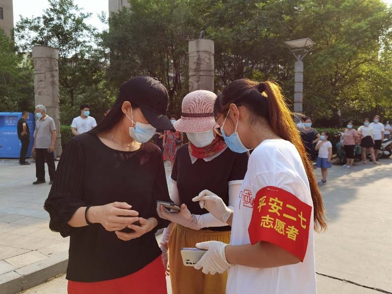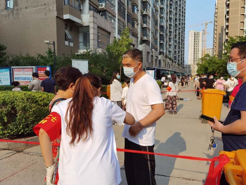 我院20级物流工程1班的李宁宁同学家住郑州市长江路街道和京广路街道交叉口,是7月31日第一批被封锁的小区的住户之一。她从最开始的害怕焦虑到看到党和政府的迅速行动,看到不眠不休的医务工作者,看到坚守岗位的社区工作者,看到团结互助的小区居民,便觉得没什么可怕的,就逐渐放宽了心,迅速决定投入到二七区疫情防控志愿服务当中,负责线上信息核查以及在核酸检测现场做志愿服务。