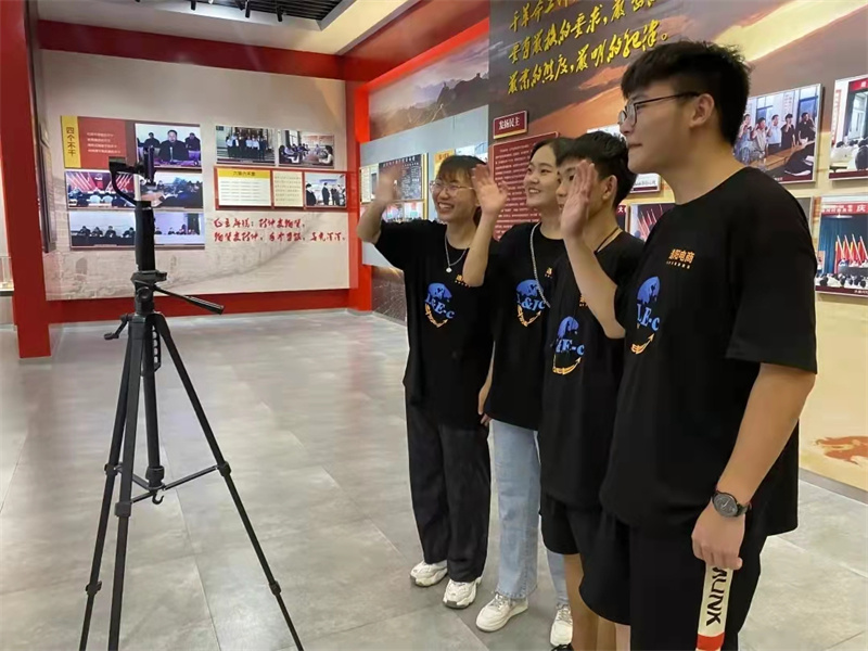 2021年7月6日上午,太阳集团tyc234cc身处兰考—梦里张庄的志愿者分队在线连通此刻正处于许昌—燕振昌纪念馆参观学习的志愿者分队,两队进行了一场别具一格的视频云共享。此次活动以红色精神为弦、英雄模范为鼓;以新媒体、云共享为途径,两地进行实时联动,奏响了一曲扎根河南大地的赞党之歌。