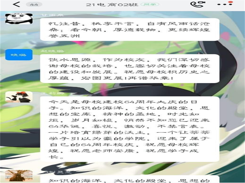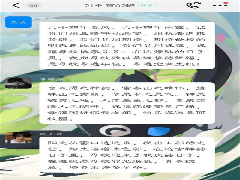 落实校团委《关于开展庆校庆爱校荣校主题团日的通知》精神,组织广大学生学习校情校史,进一步了解学校光辉办学历史和取得的突出成绩,激发对学校的自豪感、认同感和归属感,增强爱校荣校意识,9月23日晚上20点,太阳集团tyc234cc20、21级各班分别于线上开展“知校爱校荣校,共建和谐校园”为主题的团课活动。
