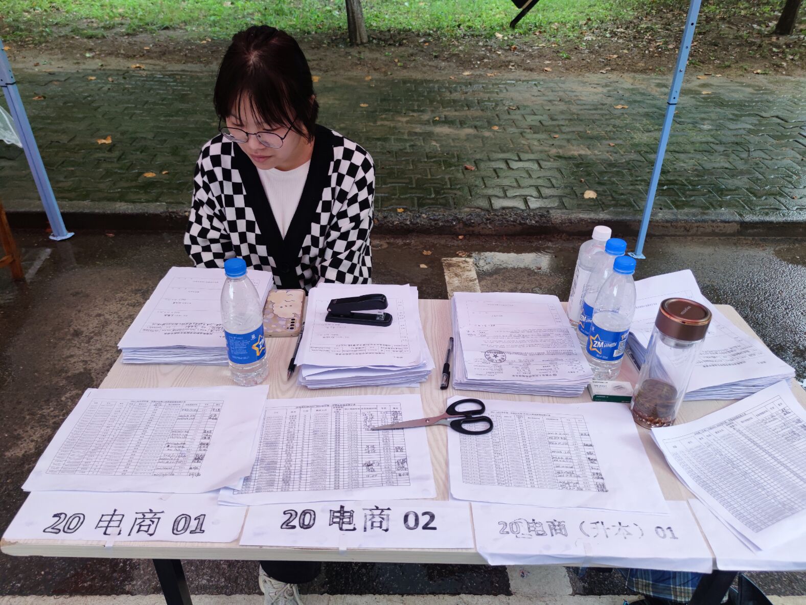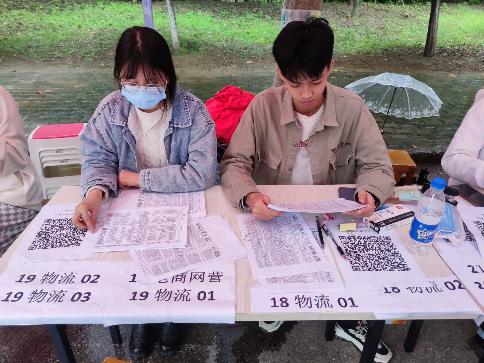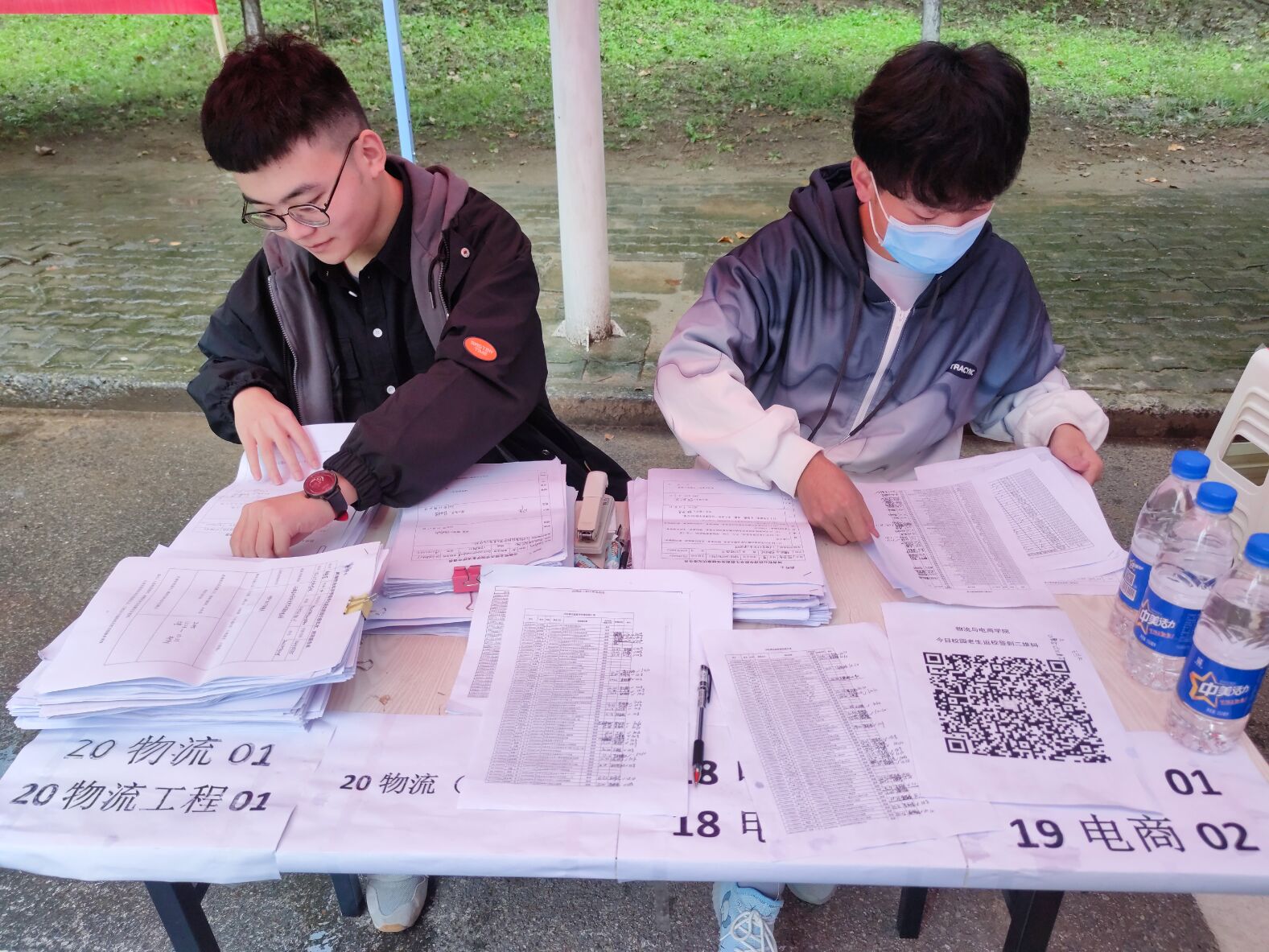开学前,我院的老师们就已经完成了开学准备,并通知到每一位学生,团学会社会实践部也提前在线上分配了开学当天的值班人员。早早到校的值班人员在同学们开学前已经搭好帐篷,支起桌子,整理好登记资料,等待同学们的踏入校园。