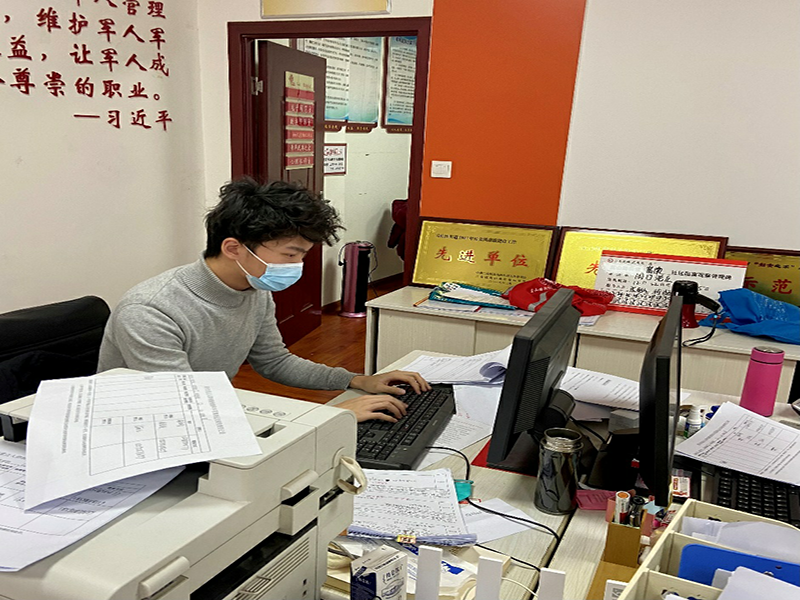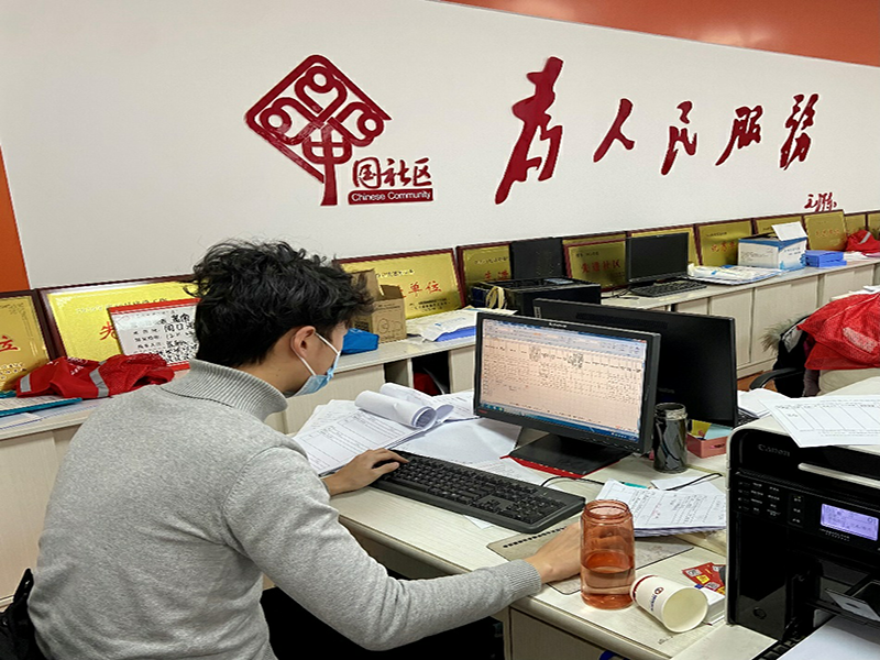 2022年元旦之际,河南省再度出现疫情,荆乐天同学的家乡郑州市也未能幸免,荆乐天同学随即再度加入社区志愿者服务队伍。夏天“涝疫结合”的志愿活动经验使荆乐天同学能够迅速进入工作状态:在办公室核对返郑人员流调信息并进行登记报备、为社区全民核酸检测做后勤物资配送保障工作……多日的披星戴月使荆乐天同学无暇顾及自己的衣着打扮,但对于他来说只要能让大家过个安稳年,这一切都是值得的。