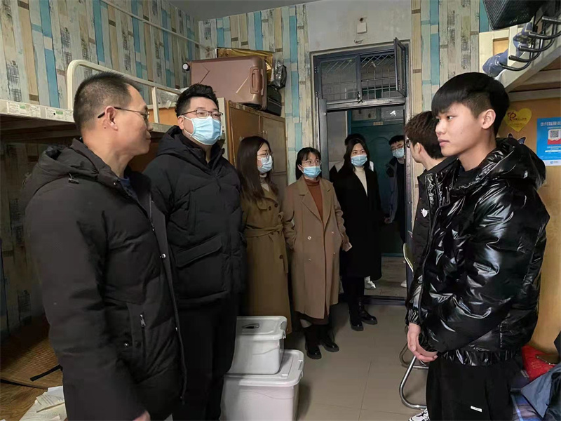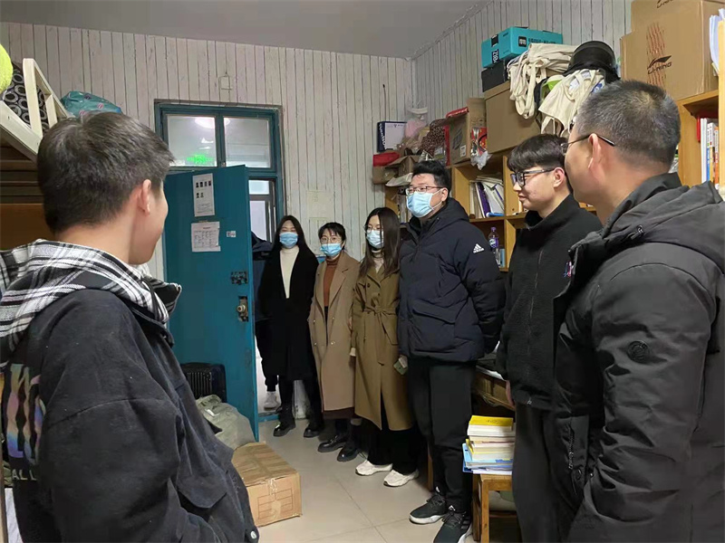 新学期伊始,为巩固维护学院疫情防控和开学复课“双战双赢”的良好工作局面,确保返校学生健康、有序、安全、踏实地在校学习和生活,2月26日下午,太阳集团tyc234cc党委副书记陈永刚、团委副书记王雪冰、全体辅导员深入学生宿舍进行全覆盖走访。