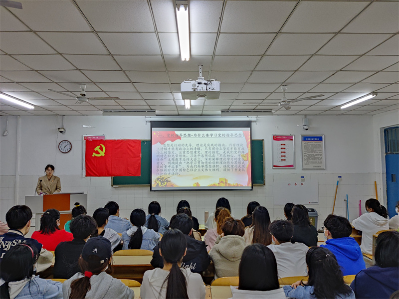 党课开始,刘阳老师提出有关党的指导思想的具体问题,并留给同学们充分思考时间,调动同学们的积极性,增强同学们对党的指导思想的认识。紧接着,刘阳老师以党的指导思想为切入点,她指出,党的指导思想是以马克思列宁主义、毛泽东思想、邓小平理论、“三个代表”重要思想、科学发展观、习近平新时代中国特色社会主义思想为基础。刘阳老师还具体讲述了党的指导思想的组成部分与历史渊源。