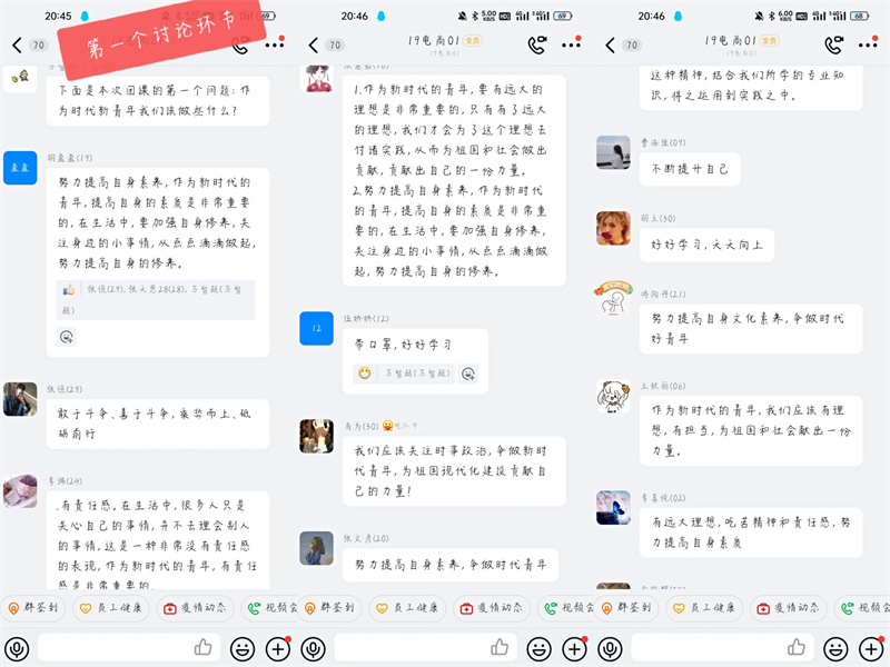 在本次团课过程中,各班级在主持人的带领下,回顾了了中国共产党百余年来领导中国人民的壮烈革命史、光荣建国史、伟大建设史和英雄抗疫史中的优秀青年代表事迹激励全体师生。随后,各班级同学选出代表,代表交流了自己的团课心得,各位代表表示,要以总书记的重要讲话为动力,以杰出青年事迹为榜样,立足自己本职工作,努力学习科学文化知识,紧密团结班级力量,为新时代中国特色社会主义建设贡献自己的力量。