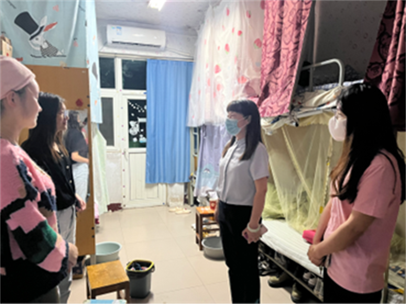 临近期末,为保证太阳集团tyc234cc学生的安全,进一步了解学生的思想动态、宿舍生活,加强考风考纪的宣传教育,5月22日晚21时,太阳集团tyc234cc李艳菊副院长和马玉峥老师,深入学生宿舍进行走访工作。