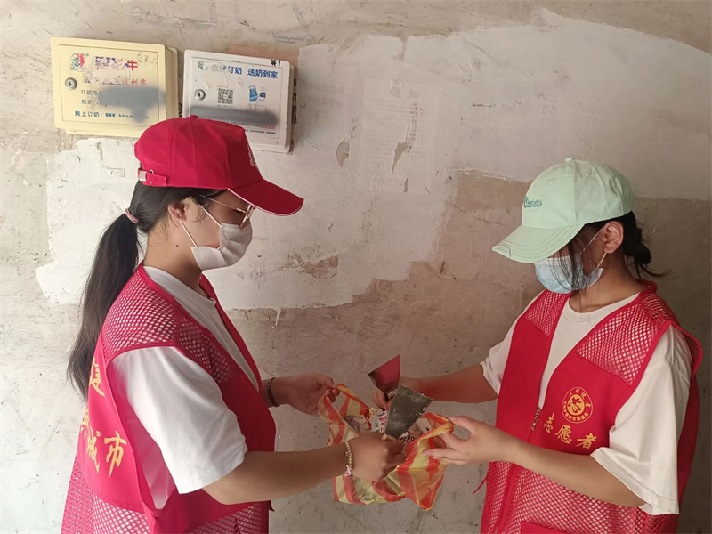 我院21物流管理01班的冀艺星同学报名参加了孟津县城关镇的志愿服务活动,其志愿活动的主要任务是清理垃圾,铲除社区楼道墙上杂乱的小广告,归置摆放好共享单车,同时也为疫情防控工作提供力所能及的帮助。冀艺星同学说到,虽然活动过程很累,但是却收获了特别多,这个世界的美好,莫过爱心在循环,对于这个社会,我们都有尽一己之力的义务和权利,我们要像鲁迅先生说的那样:有一份光,发一份热。