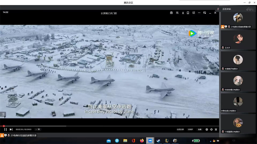 活动伊始,播放了红色影片《长津湖之水门桥》,该影片以抗美援朝战争第二次战役中长津湖战役为背景,讲述了中国人民志愿军第9兵团下属第七穿插连凭着钢铁意志和英勇无畏的战斗精神,三炸“水门桥”,阻击美陆战一师从咽喉要道撤退的故事,重现了历史场景,歌颂了革命中的英雄人物,增强了我院学子的爱国主义情怀。同学们从中深受启发,明白要始终以爱国主义为核心,大力弘扬民族精神,这不仅是那个时代一代人和一个民族的主导价值取向,也是我们这个时代的主旋律,是中华民族民族精神的代表。