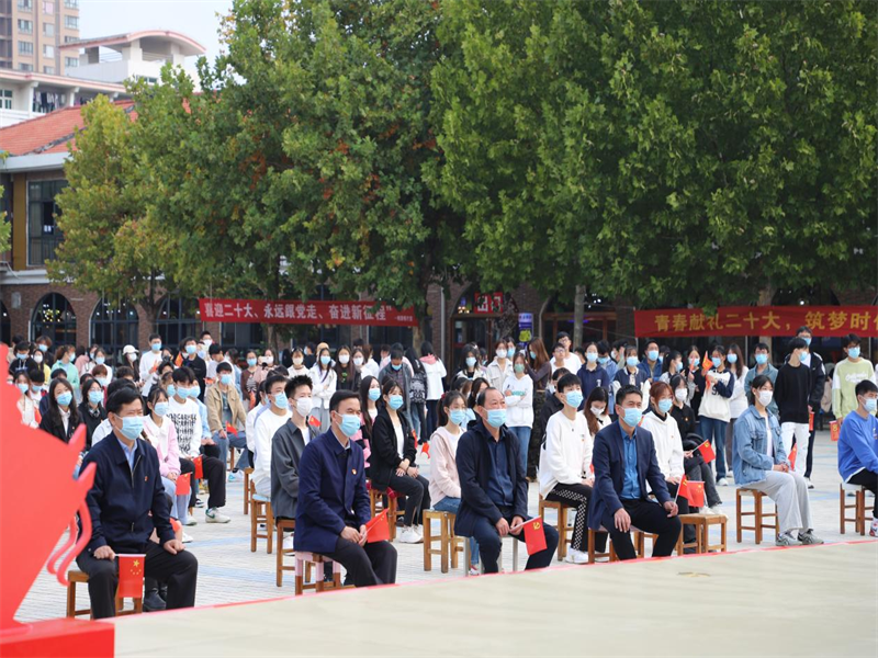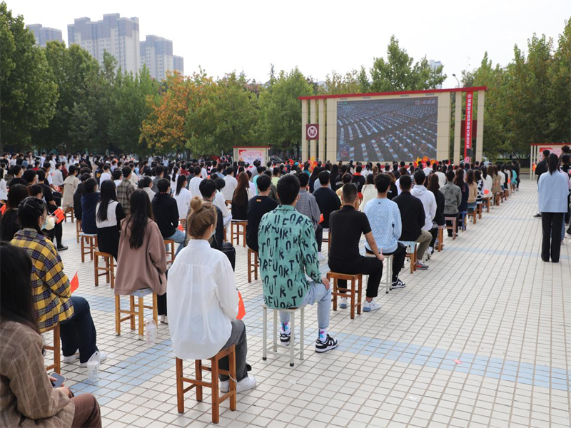 活动伊始,学校播放了由河南电视台推出的短片,让同学们深刻认识到了“极不平凡,极不寻常,攻坚克难,顽强拼搏的中国”。然后,我校同学表演了《永远跟党走》、《国家》等一系列朗诵、歌舞表演,台下掌声不绝。接着,我院代表与其他参会同学一同合唱了《没有共产党就没有新中国》、《我和我的祖国》,同学们热情歌唱,充分展现了同学们参加活动的积极性,同时也激发了同学们的爱国热情,增强同学们的民族自信。此后,全体同学怀揣着高昂的热情,共同观看了党的二十大会议的盛大召开。习近平总书记于会议中强调,高举中国特色社会主义伟大旗帜,全面贯彻习近平新时代中国特色社会主义思想,弘扬伟大建党精神,自信自强,守正创新,踔厉奋发,勇毅前行,为全面建设社会主义现代化国家,全面推进中华民族伟大复兴而团结奋斗。