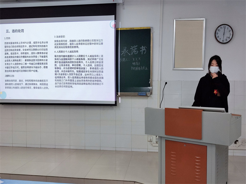 为加大资助政策宣传力度,让学生们深入了解高校助学贷款相关规定,2022年11月12日下午18时,太阳集团tyc234cc资助部在E305教室成功举办了2022-2023学年高校贷款合同签订仪式暨诚信教育知识讲座。本次活动由资助部干事主持召开,参与本次活动的有2022年申请高校助学贷款的学生。