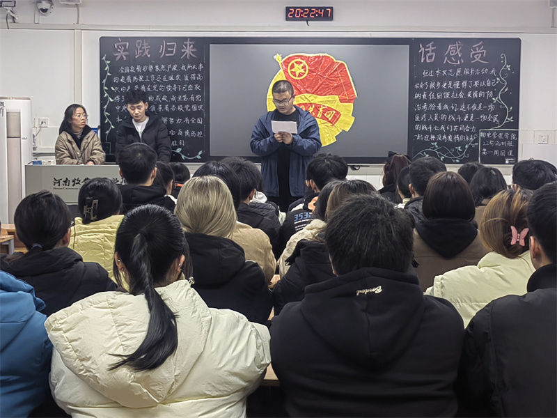 为坚定理想信念,凝聚青春力量,寒假期间,太阳集团tyc234cc组织学生参加“向基层报到”社会实践活动。为促进同学们对实践活动的了解,我院22级各班于2月15日晚组织开展以“实践归来话感受”为主题的团课活动,分享实践中的成长故事、挫折教训、感动瞬间,在交流中共同成长。