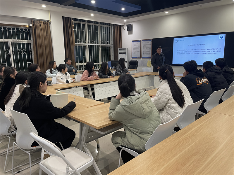 会议伊始,陈世举老师首先简单地做了自我介绍,并以传统第三方冷链物流这一模式作为切入点,向同学们展示了当代国内冷链物流行业的发展现状,在地域分布方面呈现“东多西少”的局面,并存在 “小而散、缺专人、缺资金”、市场集中度不高、配套设施少、行业监管标准不统一等问题。但是冷链物流也同样存在着多方面的发展机遇,包括政府助力、模式升级、装备升级、人才培养,以及“碳达峰、碳中和”的双碳宣言的提出等等。对于冷链物流行业存在的问题,陈老师提到冷链物流应该寻找合适的运作方式,打造集约化核心竞争力,通过多方面创新来提高自身的市场竞争力。在分享的结尾部分,陈老师提出新发展格局下的中国特色冷链物流需要冷链从业者具备更多的工匠精神,将整个分享的高度上升了一个层次。