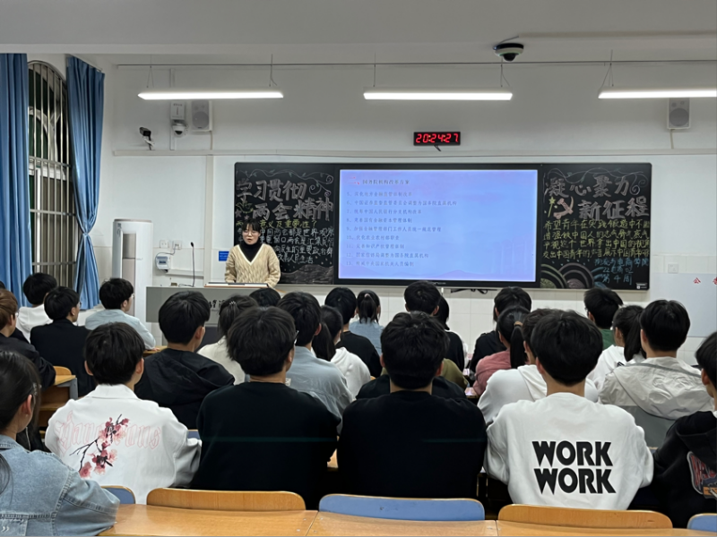 团课结尾,主持人发言:“中国共产党始终奉行着以人民为中心的民主理念,透过两会窗口,我们可以观察到中国民主法治不断进步的轨迹和国家治理现代化的探索历程。国家治理现代化包括治理体系和治理能力这两个不可或缺的方面,它们是一个国家制度和制度执行力的集中体现,两者相辅相成,代表着人民的利益。”