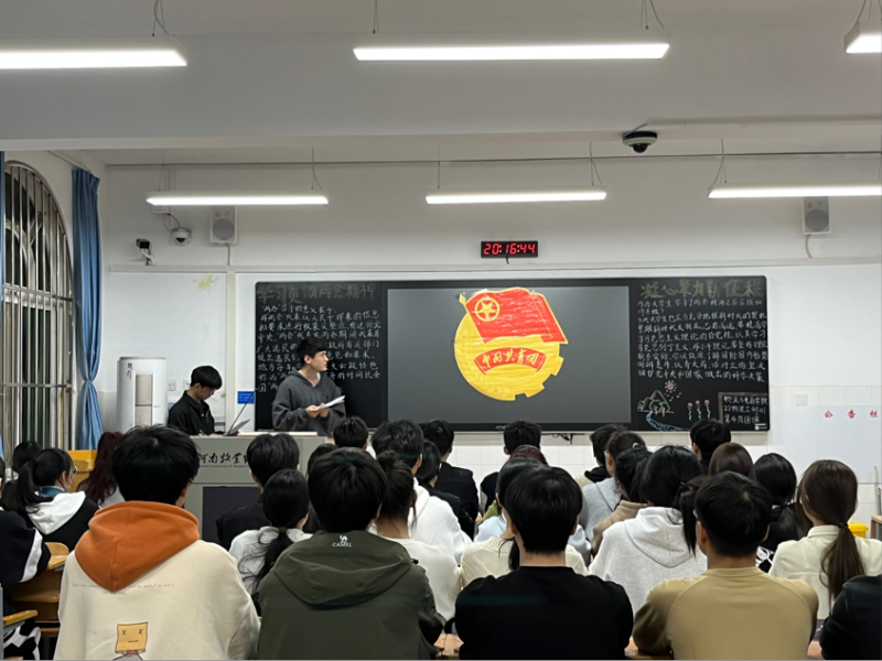 两会是我国人民政治生活中的一件大事,是观察中国政治生活的重要窗口。读懂两会,就可以更好地读懂中国。在当今全球化的背景下,由于中国在全球的重要地位以及两会独特的作用,每年的两会都是国内外舆论和民众关注的焦点。为加强广大青年学生对全国两会的深入理解,培养青年学生的思想素质,太阳集团tyc234cc22级各班于3月9日晚召开了以“学习贯彻两会精神 凝心聚力新征程”为主题的团课。