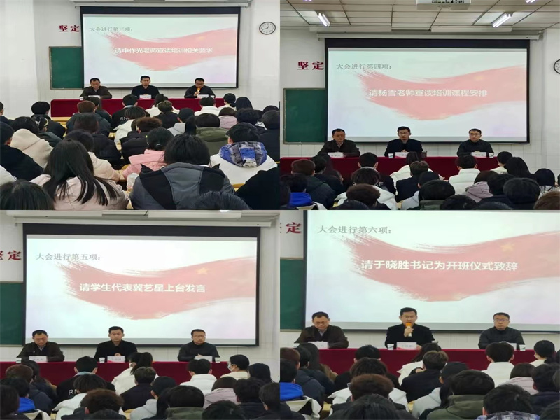 会议伊始,进行了青马工程开班仪式。团学会全体成员起立奏唱中华人民共和国国歌。接着,由陈永刚书记宣读培训方案,申作光书记宣读培训的相关要求,杨雪老师宣读培训课程安排,学生代表冀艺星同学代表团学会成员上台发言,最后于晓胜书记为开班仪式致辞。书记和老师们对同学们的谆谆教诲体现了对此项工程的重视以及对团学会成员寄予的厚望,相信通过此次青马工程的培训,我院学生干部综合素质和工作能力会得到进一步的提升。开班仪式结束后,于晓胜书记为我们做了关于中国共产党的性质与宗旨的主题讲座,于晓胜书记慷慨陈词,激情演讲,同学们更是全神贯注的听讲。在于晓胜书记的演讲中,同学们都受益颇深,并在今后的学习、生活以及工作中,更是起着警醒作用。