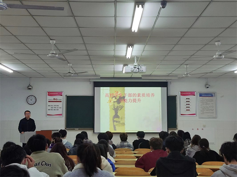 会议伊始,申书记充分讲解新时期高等教育的六大特点,以及新时期学生干部的重要作用,从而使学生干部能够更加深刻认识自我。随后,申书记依次讲解学生干部的角色意识和特性,并且呼吁学生干部大展身手,勇挑责任重担,从而进一步去提升学院学风,加强学院建设。在此之后,申书记详细地描述了学生干部应具备的素质和能力,使学生充分汲取理论知识,努力提升自身本领,更好地完善自我。会议临末,申书记向学生干部提供了如何做好学生干部和提高自身素质的途径和做法,并进一步呼吁学生干部提升自我本领,完善自我修养,从而改善学院作风。