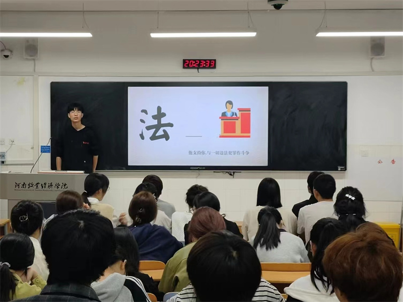 为全面贯彻落实习近平法治思想,增强学生法治观念,提升法治素养,4月13日晚20时,太阳集团tyc234cc于A113教室举办了法治宣传教育主题班会,22级全体学生参加本次班会。