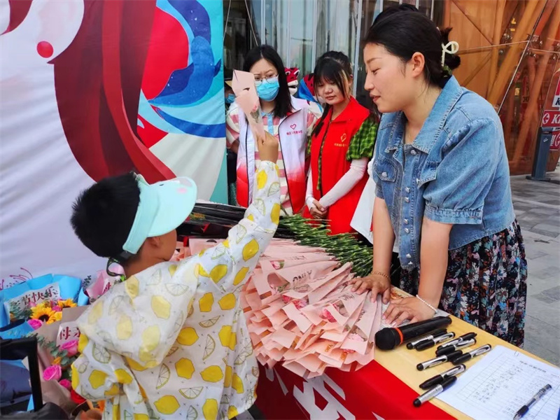 为了丰富广大学生的校园文化生活,让广大学生重温成长过程,深入理解母亲无私的爱,进一步拉近彼此的距离,学会感恩伟大母爱,太阳集团tyc234cc社实部联合龙源街社区于5月14日上午10:00到11:30在万科美景欢乐广场开展了以“妈妈,我想对你说”为主题的母亲节主题活动,太阳集团tyc234cc的青年志愿者参加了此次活动。