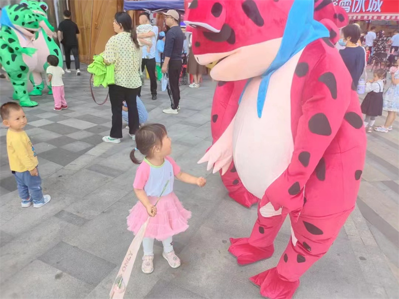 活动开始,志愿者在场地前组织参与活动的人员进行签到。随后,志愿者让参与活动的人员在母亲节主题展板上写下对母亲充满爱意的祝愿并且给予参与活动的人员鲜花以及围裙,让其送给自己的妈妈。接着,有四位志愿者身穿青蛙玩偶服,在美景万科广场内外宣传母亲节主题活动,吸引了很多小朋友前来围观拍照。身穿青蛙玩偶服的志愿者与小朋友积极互动,一同玩耍,在起到宣传作用的同时,也给活动现场增添了欢乐。