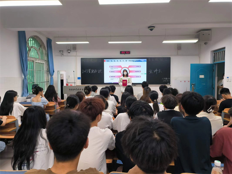 为加大学生资助宣传力度,落实学生资助政策,增强资助政策宣传效果,帮助更多贫困家庭学生顺利完成学业,促进教育公平,太阳集团tyc234cc于5月18日晚19时在A105、A110、A107、A115教室开展了资助宣传大使宣讲会。