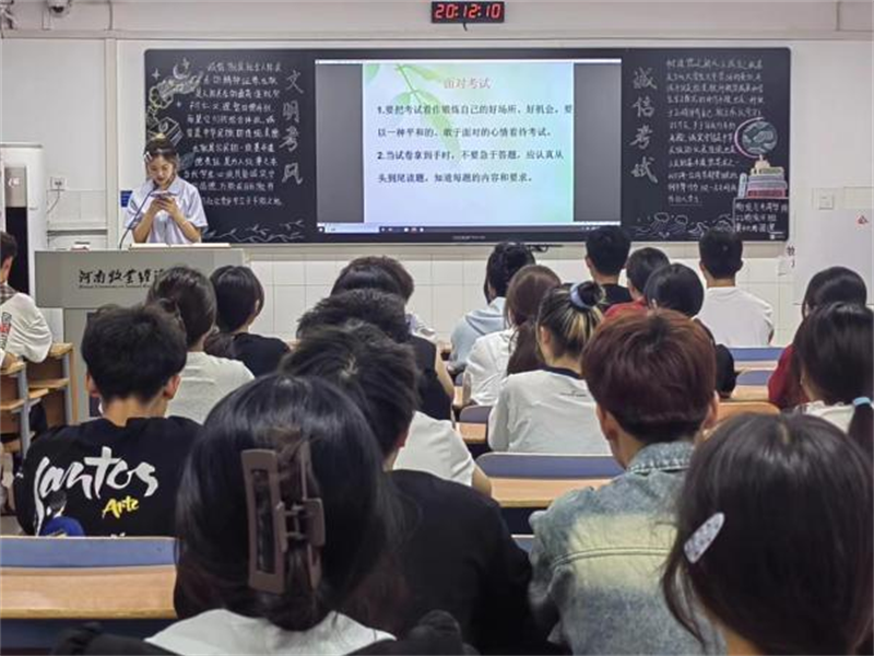 团课伊始,各班主讲人以考试注意事项为切入点,引导学生懂得认真备考、诚信考试的重要性。并对大家提出几点要求与建议,如下:一、端正态度,正确面对考试是一个收获喜悦的时刻,也是一个接受挑战的时刻。二、认真复习,积极备考“一分耕耘,一份收获”。三、严守考纪,诚信应考“千里之行,始于足下”。