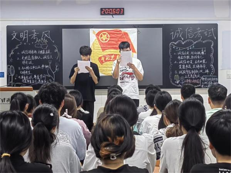 接着,各班组织同学们学习《学生手册》中有关诚信考试的内容,加深同学们对于校内管理规章制度的了解,促使同学们遵守校规校纪、严格规范自身行为。最后,同学们依次上台发言,分享自己关于“诚信”这一重要品质的相关故事,并表达自己从中领悟到对“诚信”的深入理解。团课最后,同学们纷纷表示,会在考试来临之前全身心投入到复习当中,在考试来临之际坚持诚信考试,做文明考生。