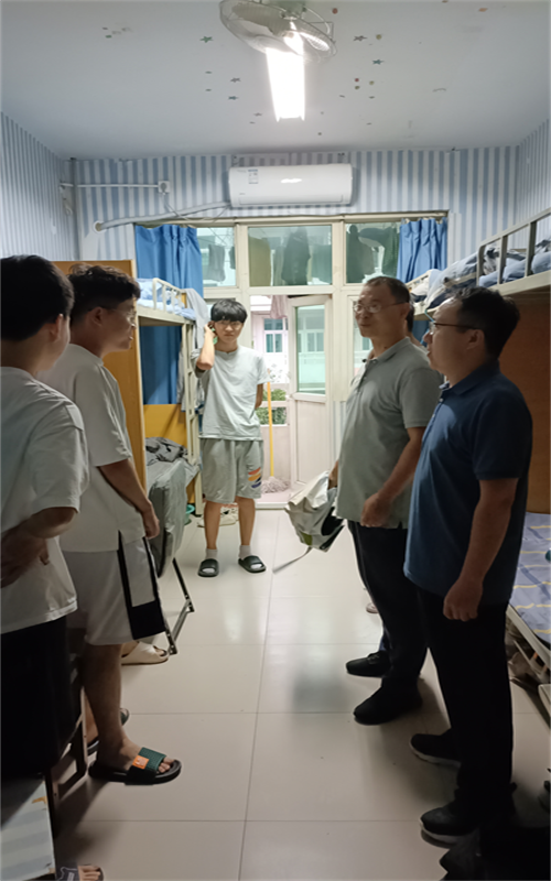 为更好了解学生在宿舍的生活情况,及时了解学生思想动态,加强师生交流,确保学院各项工作顺利开展,8月26日18时,太阳集团tyc234cc党委副书记陈永刚,团委书记申作光,团委副书记尚津和辅导员杨雪对我院22级返校的学生宿舍进行走访和慰问。