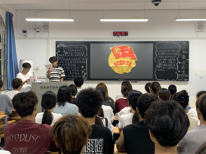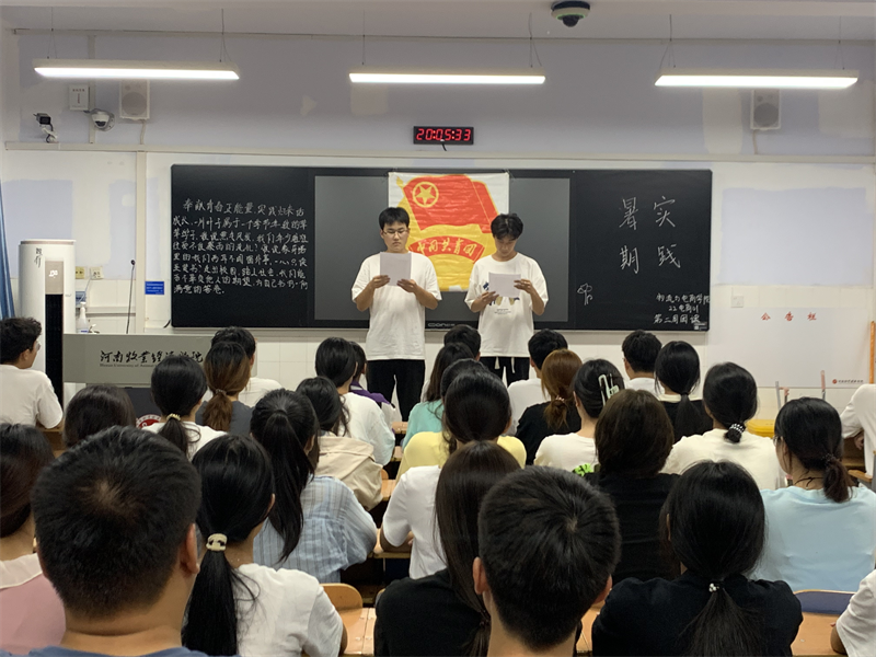 团课伊始,同学们积极发言讲述自身的实践经历。有的同学在家乡参与环境治理工作;有的同学在村支部担任起了基层助理;还有同学帮助本地新建的图书馆整理书籍和书架。随后,各班团支书从实践开展的目的、过程、意义、体验和收获等方面与同学们进行了探讨,并邀请同学们上台分享暑假期间实践生活的心得与体会。