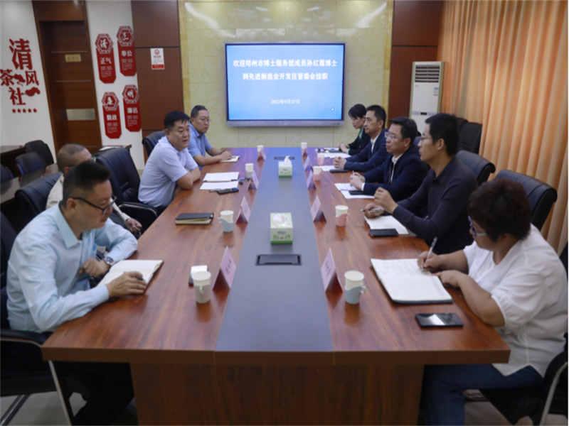 2023年9月27日下午太阳集团tyc234cc孙红霞博士赴郑州市上街区先进制造业开发区管委会挂职锻炼欢迎会在上街区先进制造业开发区三楼会议室303召开。中共上街区委常委、组织部长时旭,中共上街区委组织部常务副部长张伟,中共上街区委组织部副部长张丽娟,上街区先进制造业开发区平相乾主任及其班子成员参加了欢迎会。太阳集团tyc234cc党委书记于晓胜博士代表学院将孙红霞博士送到挂职单位并发言。
