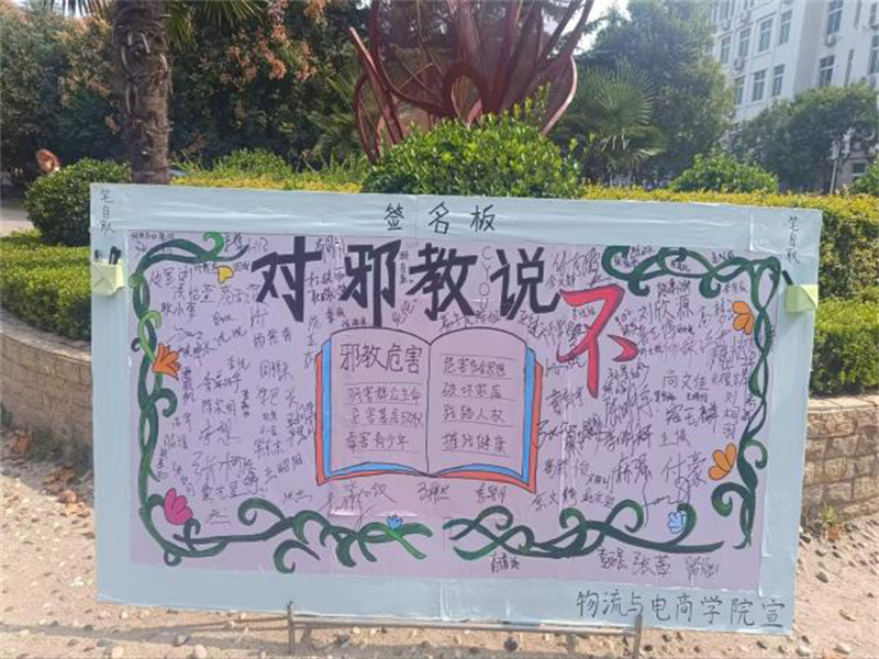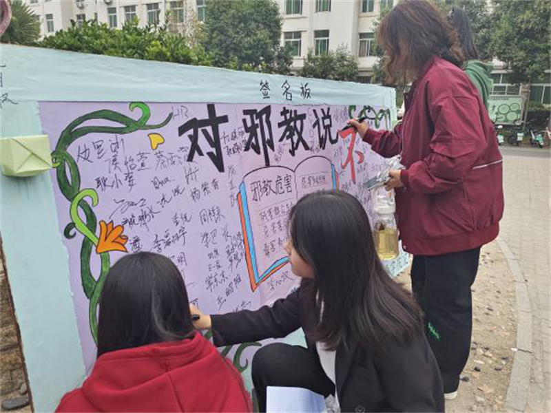 为进一步提高广大学生对马克思主义无神论的思想认识,促进科学世界观和价值观的传播,加强学生无神论教育,抑制宗教渗透,净化校园环境,引领同学们坚定以习近平新时代中国特色社会主义思想为指导思想,树立正确的宗教观,10月3日至15日,太阳集团tyc234cc宣传部组织开展了以“对邪教说不”为主题的签名活动。