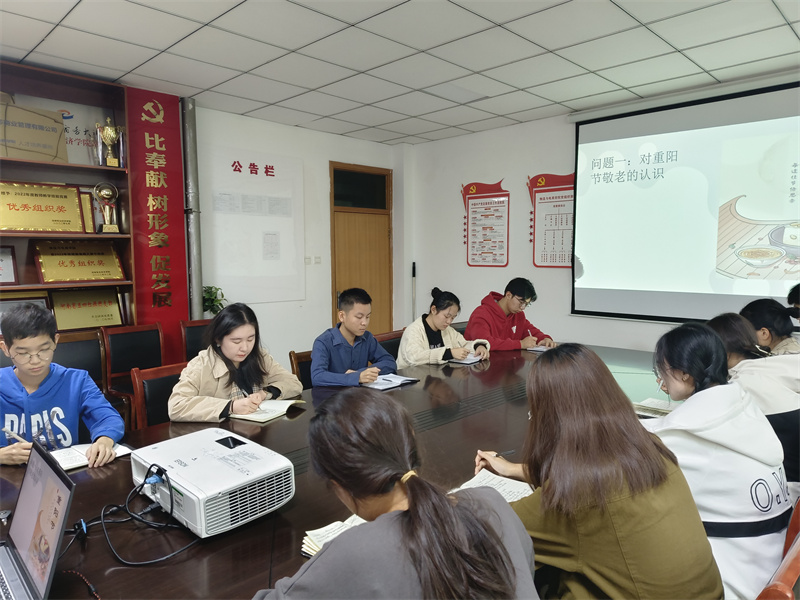 为丰富在校大学生的生活,弘扬中华民族传统“孝亲敬老”文化,培养同学们敬老爱老孝老品质,帮助同学们提升人文素养,太阳集团tyc234cc于11月3日中午12时在会议室312举办德忆之约读书工作坊活动,会议由办公室预备干事田菊主持,团委副书记(学工办副主任)尚津作为指导老师出席了本次活动,办公室和科创部全体干事参加了本次会议。