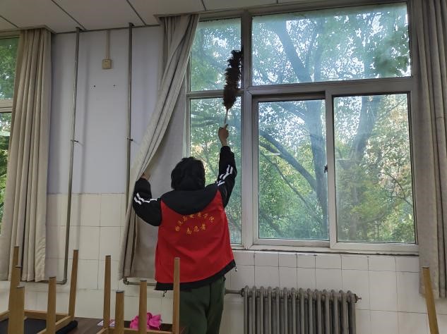 学员们统一穿着志愿服,集合后有序来到图书馆二楼南阅览室,通过与图书馆老师的沟通,老师们为学员志愿者们提供了一些必要的清洁工具和保洁物资,随后,学员们根据预先分配的任务,分成若干小组,分别负责不同的区域。先是集中打扫图书馆内部的设施卫生,包括清理桌面上的垃圾、擦拭窗户和暖气片、清扫电风扇扇叶等等。志愿者们穿着统一的工作服,手持工具,有条不紊地进行着清洁工作,紧接着是拖地、扫地。志愿者们认真负责,积极投入,充满热情地完成了各项任务,使得图书馆的内部环境焕然一新。通过本次打扫图书馆清洁整理的志愿服务实践活动,我们不仅为图书馆提供了一个干净整洁的环境,也为学习氛围带来了可见的改善。学员志愿者们在活动中充分发挥了团队合作的精神,用行动诠释了公益和奉献的真谛。只有通过每个人的共同努力,才能为校园创造更美好的环境。这次活动不仅使学员们感受到了团结和友爱,也增强了学员们对校园的归属感和责任感。