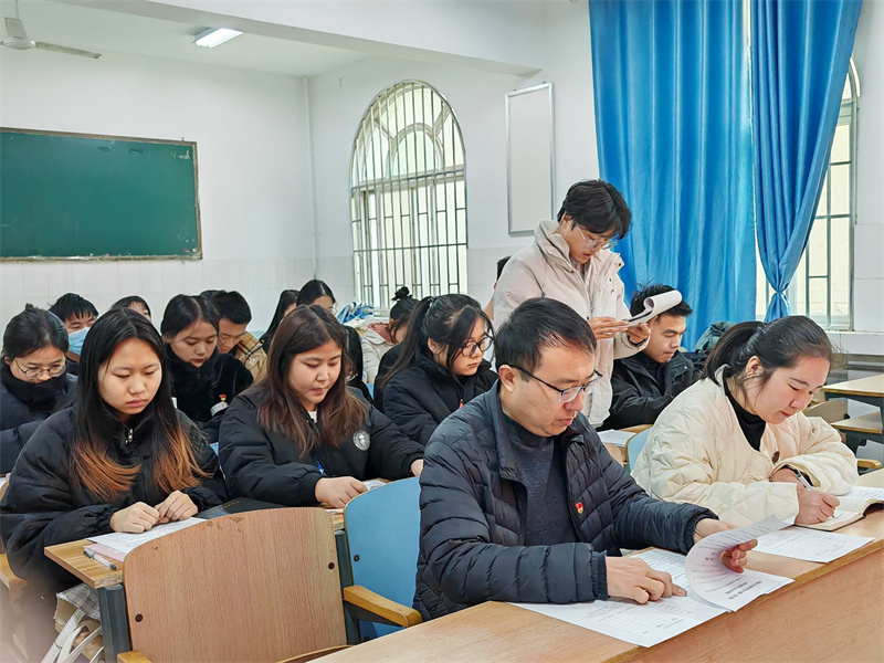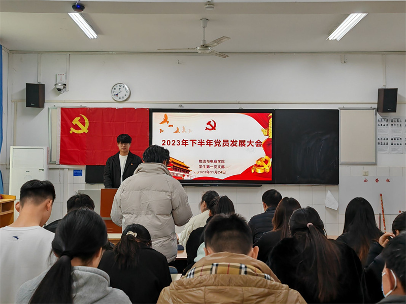 为了加强我院基层党组织建设,培养优秀党员,增添支部党组织活力,太阳集团tyc234cc于11月24日12:30在教学楼B113召开了2023年下半年党员发展大会,学生第一党支部宣传委员华宇主持,团委书记(学工办主任)申作光,团委副书记(学工办副主任)尚津出席本次会议,学生第一党支部全体在校生党员和6位新发展预备党员参与了此次会议。