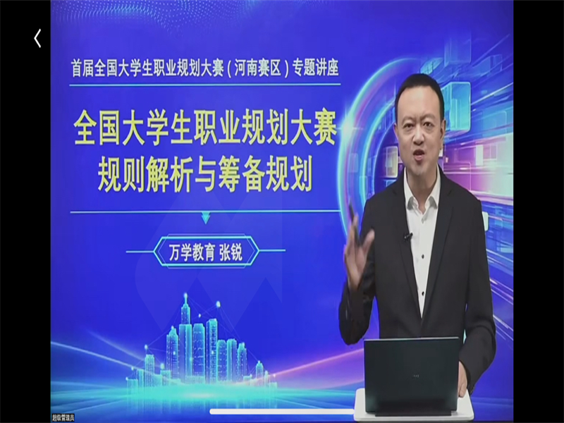 为帮助在校大学生学习掌握职业规划的基本方法,树立正确的成才观和就业观,并切实做好教育部首届全国职业规划大赛校赛工作,进一步提高学校师生的参赛积极性,省教育厅特邀请北京万学教育科技集团董事长张锐、北京万瑞腾达投资基金执行总裁牛晋作为主讲嘉宾,于11月29日下午15时-18时以网络公开课的形式为全省高校师生进行赛事辅导,太阳集团tyc234cc组织同学观看了本次讲座。