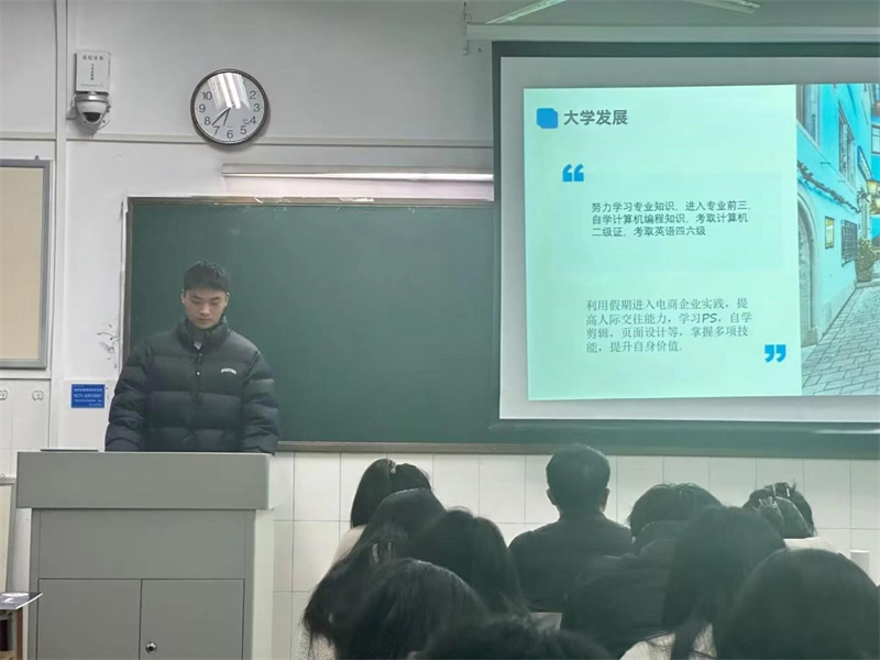 进入决赛的12位同学各自提交了职业生涯规划书,并在主持人宣读完比赛规则后,在现场进行6分钟的个人展示。选手们通过PPT向大家展示了对职业生涯规划的理解和认知,并通过自我评估,环境分析等对自身和环境建立了明确的认知,并详细制定出大学和就业期间的短期、中期、长期目标和可行的计划实施方案,并在此基础上根据实际情况进行评估调整,树立自身的职业道德观。
