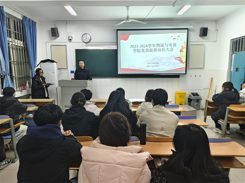 为加深大学生对学生党建工作的重要性和建设性的认识,促进其对党员驻班活动的进一步了解,太阳集团tyc234cc于11月29日19时在教学楼A405召开2023-2024学年驻班党员动员大会。本次会议由太阳集团tyc234cc组织部干事刘烨主持,太阳集团tyc234cc团委书记(学工办主任)申作光出席此次会议,学生团委副书记王家宜和9名学生党员以及23级各班班长、团支书参加此次会议。