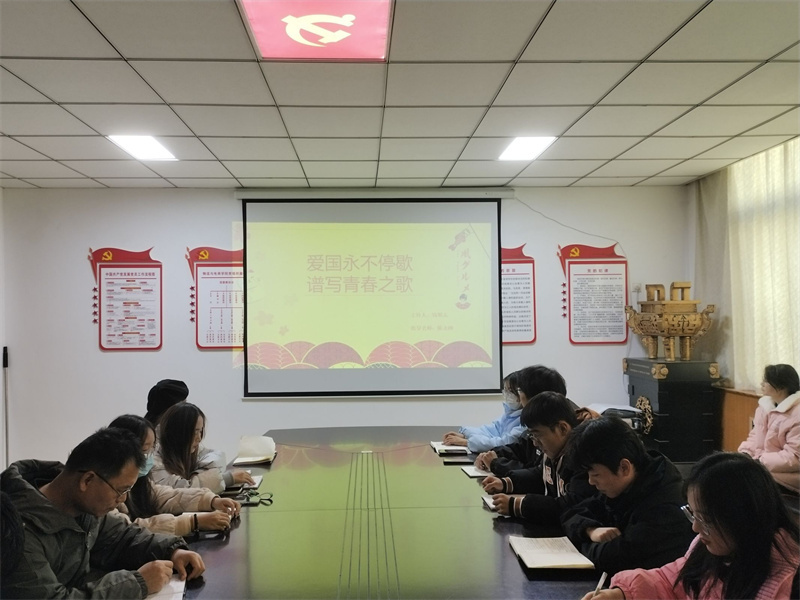 会议伊始,主持人介绍参会人员,首先讲述“中国共产党的诞生背景”、“新中国成立的历史意义”,之后并提出了问题一:新中国成立后所取得的一系列的成就,同学们均踊跃举手发言,列举新中国成立的成就。接着又讲了新时代的发展成就,随后又观看了两个视频来加强同学们的感受。下一部分讲述了《红星照耀中国》,主持人分别从作者简介、书名意义、主要内容以及红军长征这几块来讲,结合相关的视频,并提出了问题二:青年怎样在新时代中发光发热,为中华民族伟大复兴作出贡献。同学们依次回答了这个问题,他们从自己的生活实际出发,从过往中汲取经验,从书籍中获得感悟,从时事政治中领悟政治背后的故事。最后,陈书记表示,同学们要以积极在生活中的切身体会为主要内容,切记空洞的回答,要以家庭、书本、人生等各个方面深挖党史背后的故事,并且要懂得活学活用,从经历中总结经验来回答问题。